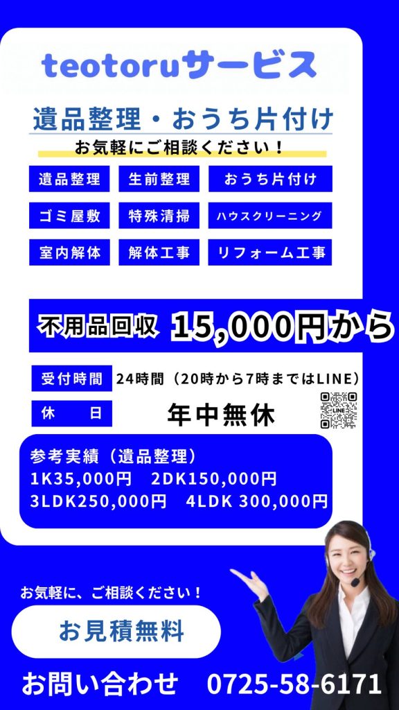 関西エリアでの遺品整理、生前整理、ゴミ屋敷、お家まるごとお片付け