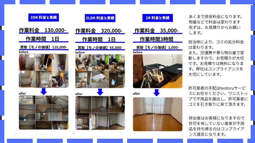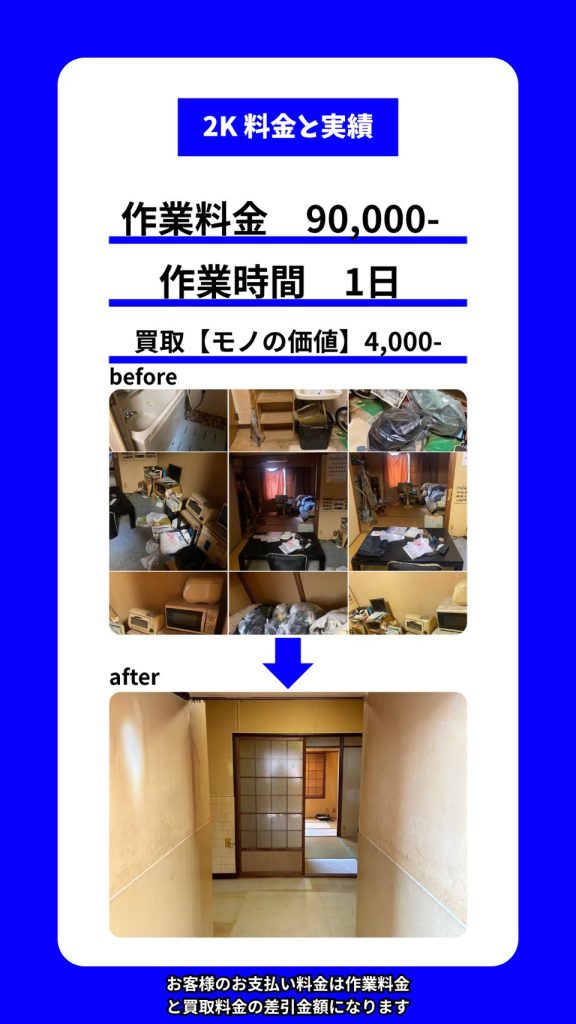 お部屋丸ごとお片付け(間取り別目安)遺品整理 生前整理