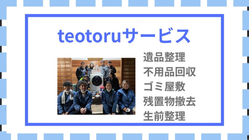 そんなお悩みは、すべて私たち『teotoruサービス』にお任せください。 遺品整理から、不用品回収、ごみ屋敷の片付け、お引越し後の残置物撤去まで。私たちはただモノを捨てるのではなく、お客様の「心と空間の余白」を取り戻すプロフェッショナルです。