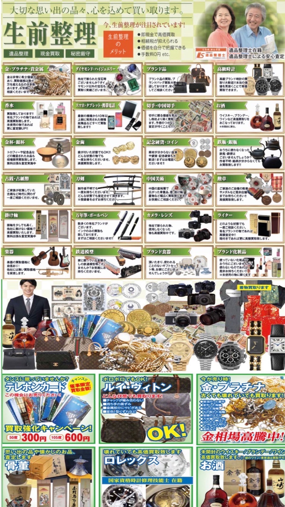- 買取サービスの併用:家電、家具、貴金属、ブランド品など、再利用可能なものはその場で査定・買取いたします。作業費用から買取額を差し引くことで、実質負担を大幅に減らすことが可能です。